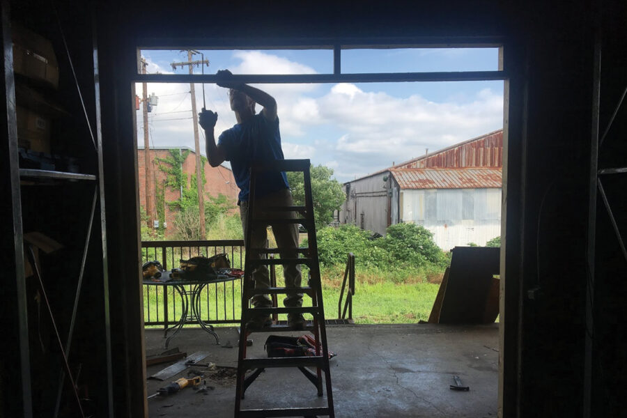After painting the front interior warehouse wall white to brighten up the space for the…